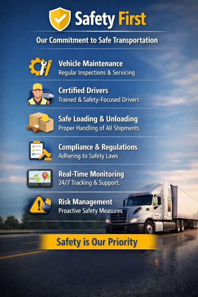 We maintain a modern fleet that is regularly inspected and serviced to meet industry safety requirements. Our drivers are trained professionals who follow all safety protocols, traffic regulations, and best practices to ensure smooth and accident-free journeys.